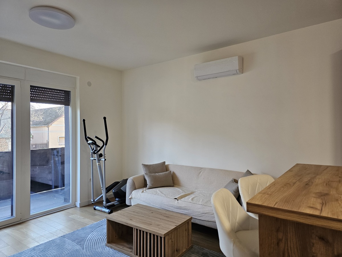 Izdaje se dvoiposoban stan površine 58m2 u novoizgrađenoj zgradi u širem centru grada u mirnoj ulici u blizini škole, vrtića, pijace, marketa, …
