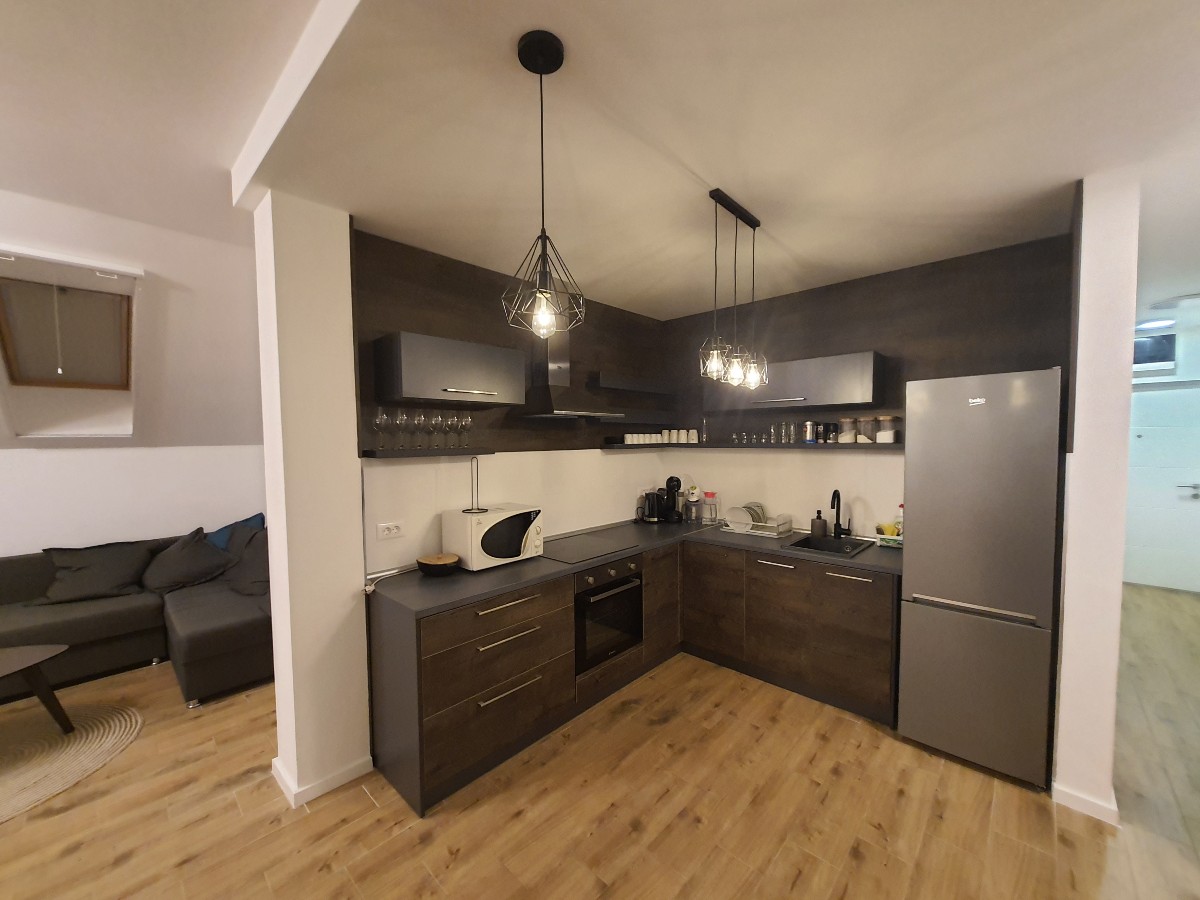 Stan je opremljen i namešten, kuhinja je rađena po meri sa ugradnom tehinkom.