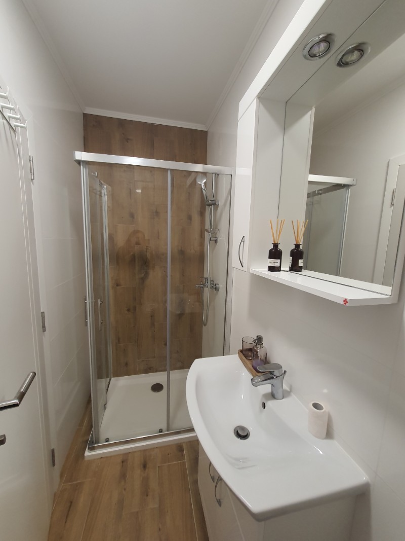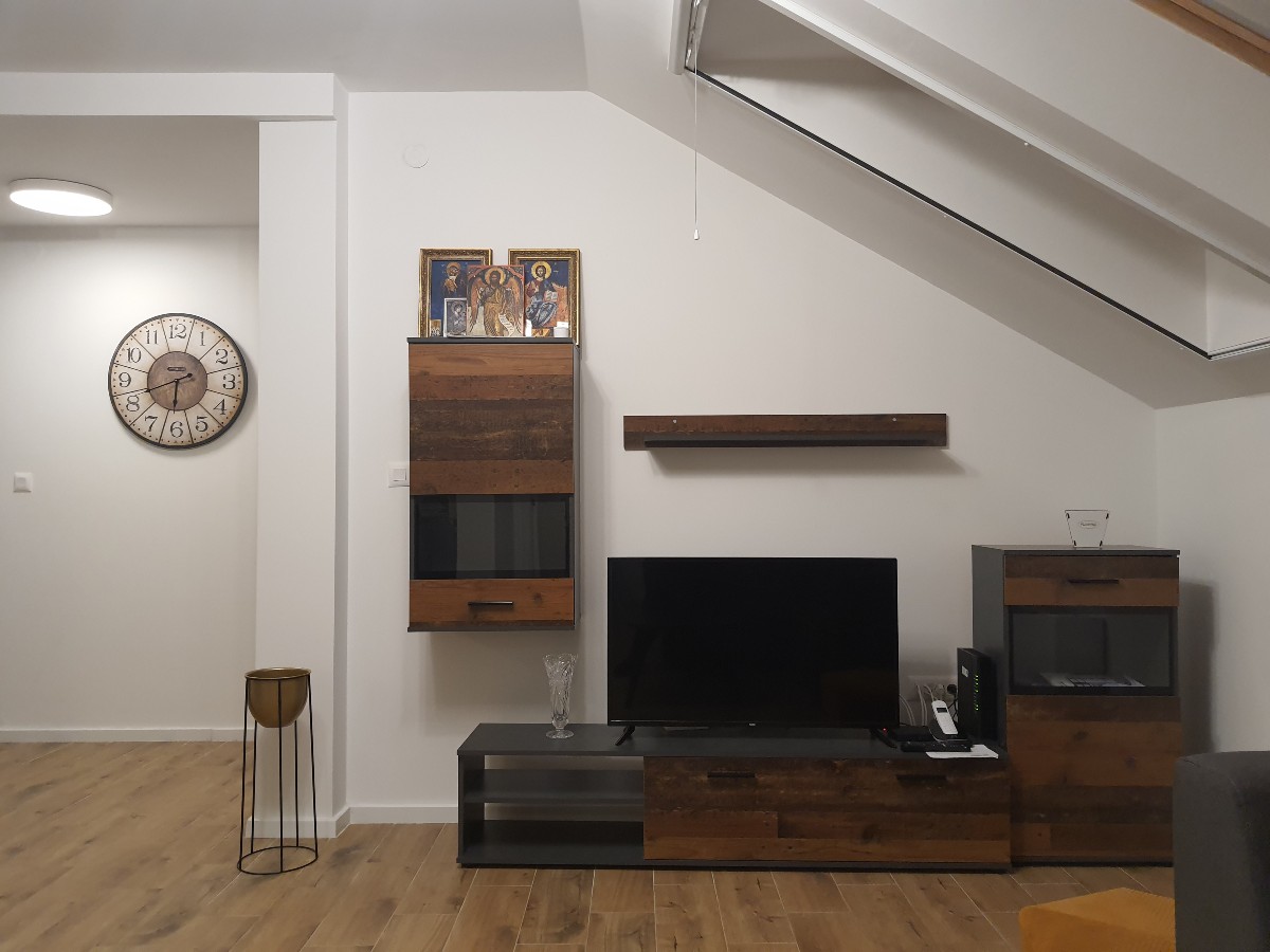 Veš mašina u kupatilu, TV u dnevnoj sobi.Oba kupatila su sa tuš kabinama.