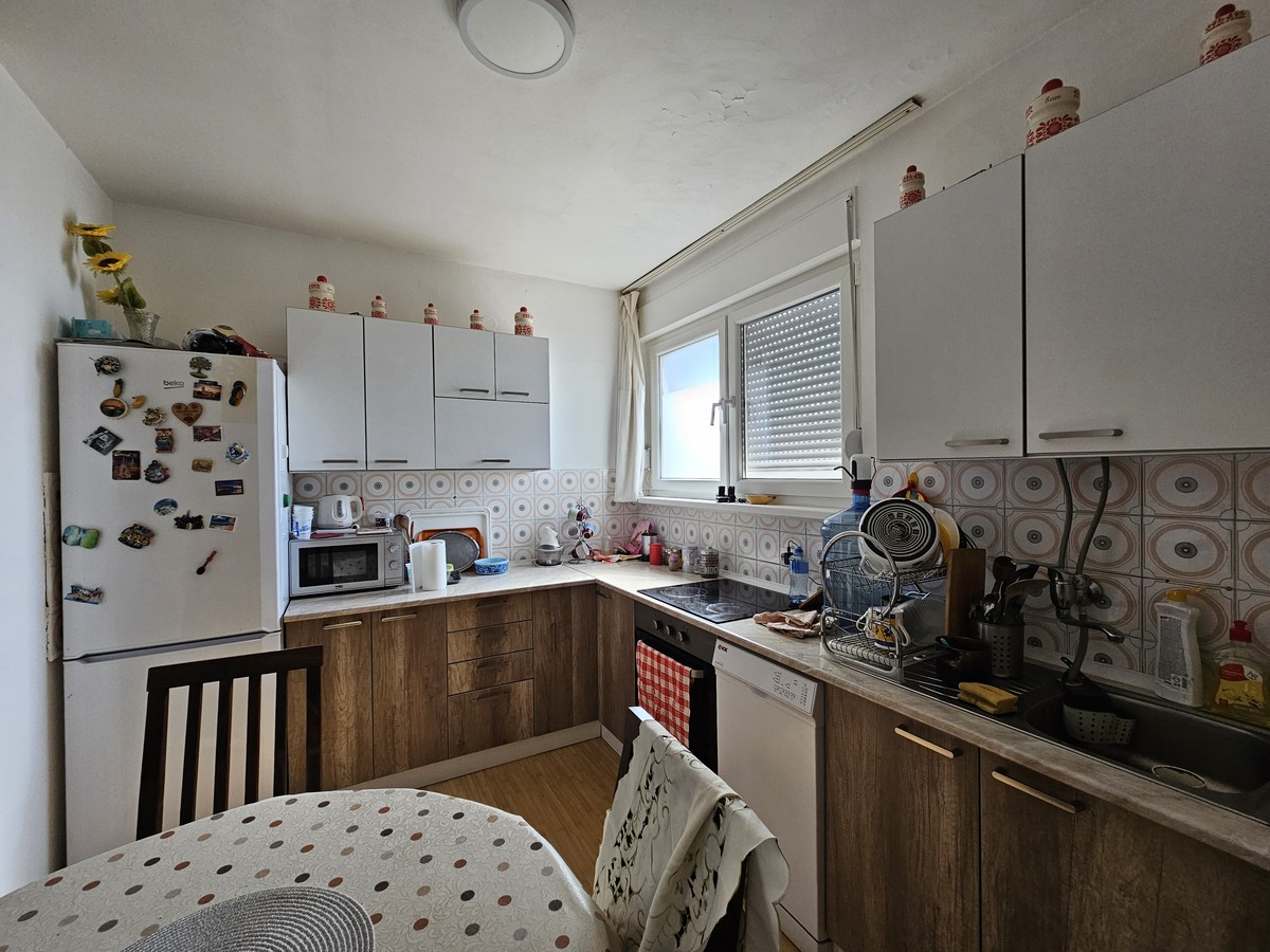 Stan je delimično renoviran, ugrađena je PVC stolarija, sigurnosna ulazna vrata i postavljen je laminat.